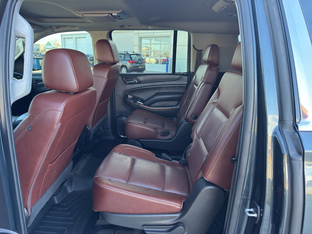 Sun. Entertainment and Destinations Package: AM/FM Stereo with Navigation; Rear Seat Entertainment System; Power Tilt-Sliding Sunroof with Express-Open/close. Premier Plus Edition: Enhanced Driver Information Center; 22" 6-Spoke Split Chrome Wheels; Power-Retractable Assist Steps; 2-Speed Active Electronic Autotrac Transfer Case; 3.23 Rear Axle Ratio; 170 Amp Alternator; 6.2L V8 EcoTec3 Engine; Integrated Trailer Brake Controller; High-Capacity Air Cleaner; AM/FM Stereo with Navigation; Collapsible Cargo Area Organizer; Rear Seat Entertainment System; P285/45R22 AS BW Tires; Power Tilt-Sliding Sunroof with Express-Open/close; Black Roof Rack Cross Bars; Power Release 2nd Row Bucket Seats; Electronic 10-Speed Automatic Transmission with Overdrive; Polished Exhaust Tip. Preferred Equipment Group 1LZ: Memory Settings; Heated Leather Wrapped Steering Wheel; Perforated Leather-Appointed Seat Trim; Remote Vehicle Start; 3rd Row 60/40 Power Fold Split-Bench; Front and Rear Park Assist; Floor Console with Storage Area; 6-Way Power Front Passenger Seat Adjuster; AM/FM Stereo with Navigation; 7. 500 lbs (3. 402 Kgs) GVWR; Enhanced Driver Alert Package; Rear Cross Traffic Alert; Fog Lamps; Driver Inboard and Front Passenger Airbags; Wireless Charging; Universal Home Remote; Color-Keyed Carpeting Floor Covering; Heated 2nd Row Outboard Seats; 12-Volt Auxiliary Power Outlet (5); Hands-Free Power Liftgate; 1st and 2nd Row Color-Keyed Carpeted Floor Mats; Heated and Ventilated Front Reclining Bucket Seats; Power Folding and Adjustable Heated Outside Mirrors; Lane Change Alert with Side Blind Zone Alert; Electronic Cruise Control with Set and Resume Speed; HD Radio; SiriusXM Radio; Single-Speed Active Autotrac Transfer Case; Black Assist Steps; Power Tilt and Telescoping Steering Column; Roof-Mounted Luggage Rack Side Rails; Passive Entry System; Magnetic Ride Control Suspension Package; Auto-Dimming Inside Rearview Mirror; Power-Adjustable Accelerator and Brake Pedals; Push Button Keyless Start; Power Release 2nd Row Bucket Seats; 4-Wheel Antilock Disc Brakes. Rear Seat Entertainment System. Power-Retractable Assist Steps. Power Tilt-Sliding Sunroof with Express-Open/close. Enhanced Driver Information Center. Black Roof Rack Cross Bars. Collapsible Cargo Area Organizer. Polished Exhaust Tip. **Equipment listed is based on original vehicle build and subject to change. Please confirm the accuracy of the included equipment by calling the dealer prior to purchase.**